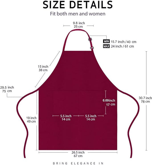 Chef Apron, Waterproof Apron, Adjustable Apron with 2 Pockets for Men Women, Professional Apron for Kitchen Cooking Gardening Painting Baking Restaurant (Wine) SKU#AWINEAPRON